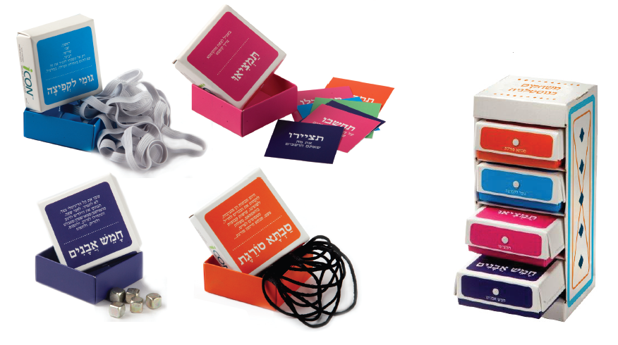 ערכת משחקים מעוצבת המכילה 4 מגירות ובתוכן חמש אבנים, גומי למשחק, חוט לסבתא סורגת וטיפים להמצאת משחקים אישיים. הערכה פותחה בשיתוף פעולה בין צומי לעמותת קווים ומחשבות וההכנסות ממכירותיה הוקדשו לפעילות העמותה
