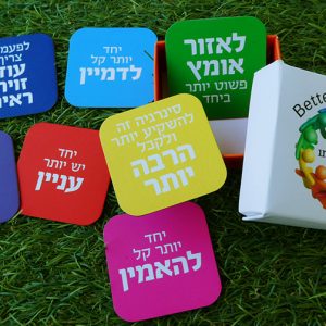 ייצרנו להם קופסה ממותגת ובתוכה עשר גלויות צומי לשמחות ואירועים אישיים.